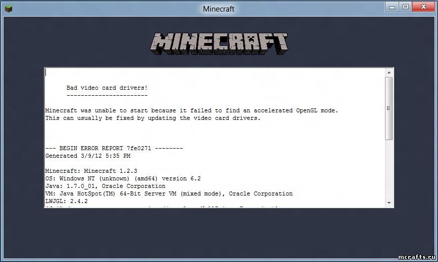 2)При запуске minecraft, нам выдает ошибку :